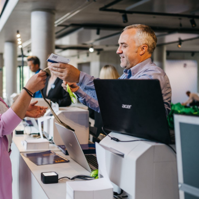 Hier kommen wir ins Spiel: Mit unseren modularen OnSite-Lösungen, von Self-CheckIn-Kiosken über mobilen Scannern bis hin zur Auswertung, sorgen wir dafür, dass der erste Eindruck sitzt und auch kurzfristige Änderungen problemlos umgesetzt werden.